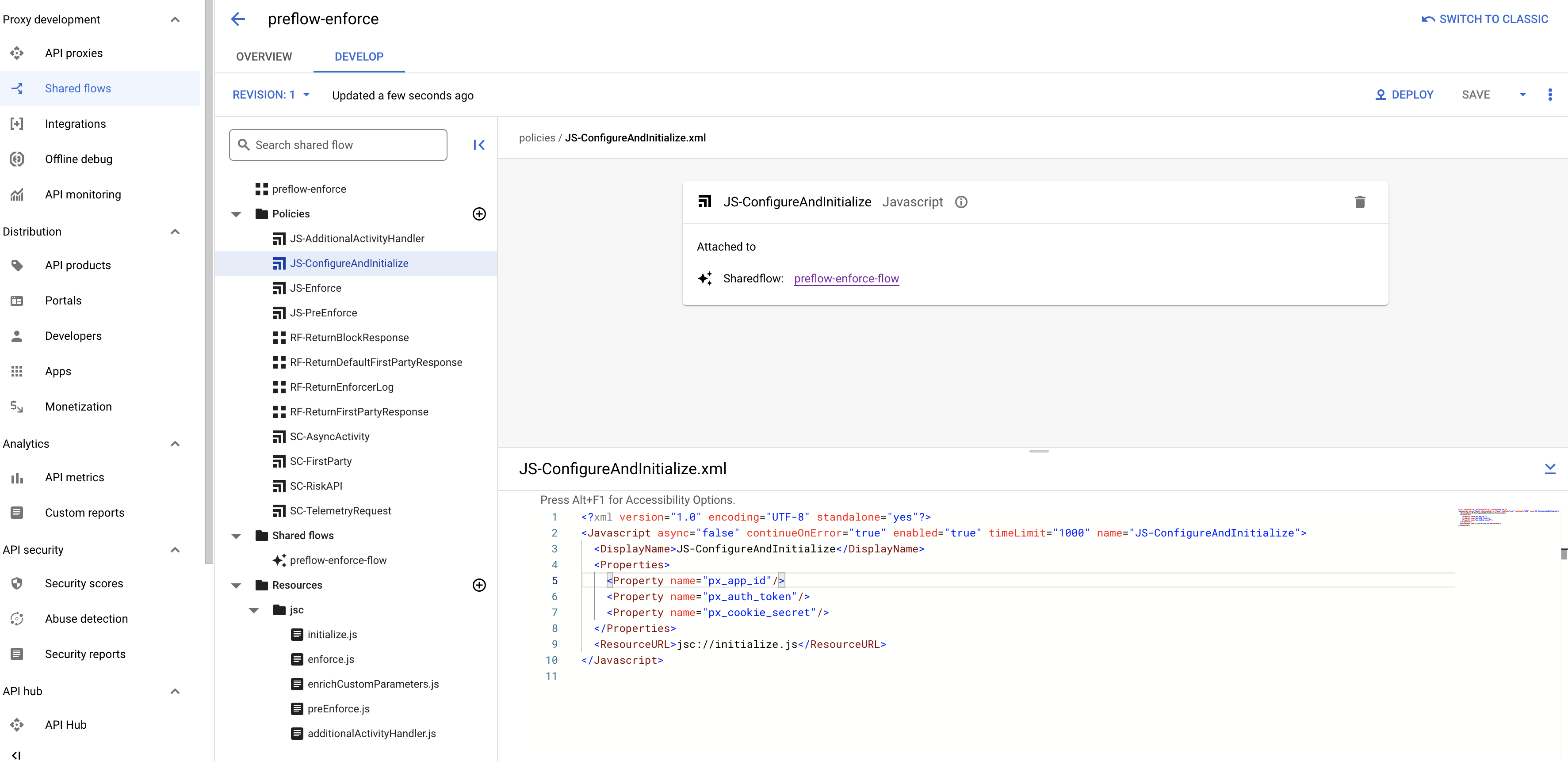 JS-ConfigureAndInitialize.xmlfile inside thepreflow-enforceShared Flow Bundle. - Invoking the HUMAN Shared Flows by defining and invoking FlowCallout policies within your custom API Proxy or Shared Flow.